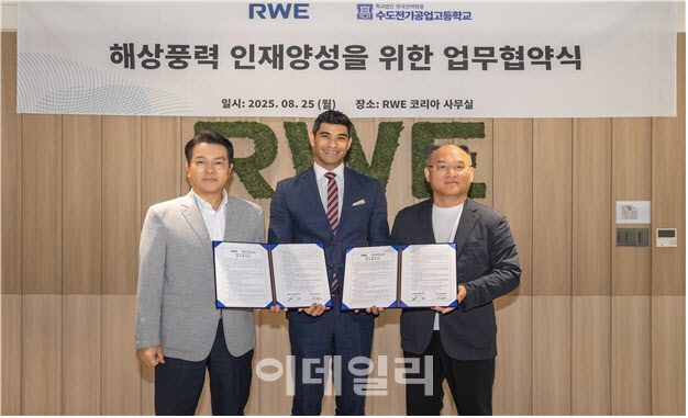 수도전기공고-RWE, 해상풍력 인재 양성 위해 'MOU' (이데일리, 8월 27일) 수도전기공업고등학교(수도전기공고)는 지난 25일 독일 최대 전력회사인 RWE와 해상풍력 인재 양성을 위한 업무협약(MOU)을 체결했다고 밝혔다. 이날 행사에는 데이비드 존스, 문고영 RWE 코리아 공동대표, 최명호 수도전기공고 교장 등이 참석했다. 이날 협약 체결로 양 기관은 △해상풍력 및 신재생에너지 분야 교육과정 공동 개발 △해상풍력 관련 교육 및 연수 프로그램 제공 △취업연계 및 우수 졸업생 채용 기회 확대 등에 협력하게 된다.
