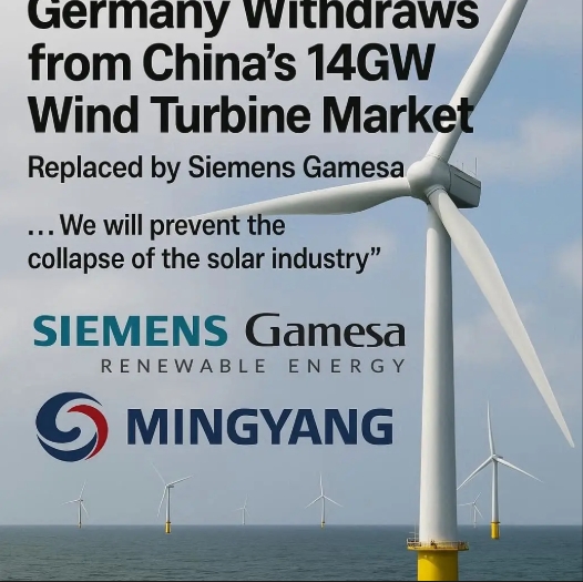 [심층분석] 독일, 중국 풍력터빈 공세 맞서 방어막 강화...밍양 퇴출·지멘스 가메사 선택 (글로벌이코노믹, 9월 20일) 독일 풍력발전 업계가 중국 풍력터빈 제조업체들의 유럽 시장 공세에 맞서 자국 산업 보호를 위한 방어막을 강화하고 있다. 리차지뉴스가 지난 18일과 지난달 26일 연이어 보도한 내용에 따르면, 독일은 2024년 기록을 세운 14기가와트(GW) 육상 풍력발전 용량을 승인하면서도 중국 기업들의 시장 진입을 차단하는 정책을 강화하고 있다. 올해 5월 독일 국방부는 중국 기업이 제공하는 풍력 터빈을 주요 안보 기반 시설에 도입하는 것은 사이버 보안·스파이 우려가 있다며 해당 프로젝트 중단을 검토하겠다고 공개했다.