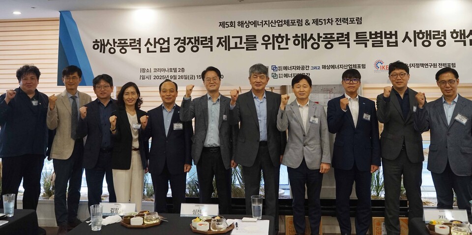 “해상풍력 산업 육성하려면 2030년까지 입찰 물량 제시해야” (전기신문, 9월 26일) 해상풍력 산업과 공급망을 육성하기 위해 중장기 정부 입찰 계획을 담은 로드맵이 필요하다는 목소리가 나온다. 에너지와공간과 해상에너지산업체포럼, 미래에너지정책연구원 전력포럼은 26일 서울 코리아나호텔에서 ‘해상풍력 산업 경쟁력 제고를 위한 해상풍력 특별법 시행령 핵심과제’를 주제로 포럼을 개최하고 예측 가능한 시장의 필요성에 대해 공감대를 형성했다. 김윤성 에너지와 공간 대표는 ‘해상풍력 공급망 산업 성장을 위해 시행령이 담아야 할 핵심’을 주제로 발표하며 장기적 입찰 물량과 공급망 산업 지원안을 담은 종합대책수립이 필요하다고 지적했다.