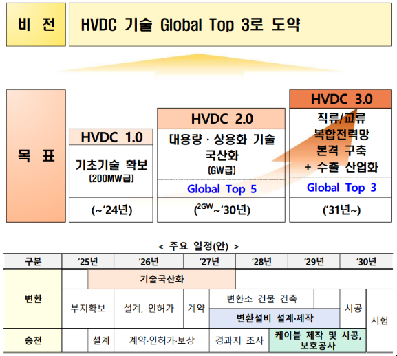 HVDC로 그리드 전환 가속...전력망委 "확보한 국산 기술 수출해 글로벌 탑 3 간다" (전기신문, 10월 3일) 정부가 HVDC를 축으로 전력망 체계의 대용량 직류송전 전환을 본격화한다. ‘국가기간 전력망 확충 특별법’ 시행에 맞춰 2030년까지 2GW급 전압형 HVDC를 실계통에서 검증하고 국산화한 기술을 수출 산업으로 육성하는 전략 로드맵을 제시했다. 이번 전략은 '기술 고도화-실증-투자-수출'을 단기간에 한 묶음으로 설계해 생태계를 단숨에 육성한다는 야심찬 계획을 담고 있어 실현 여부에 관심이 쏠리고 있다.